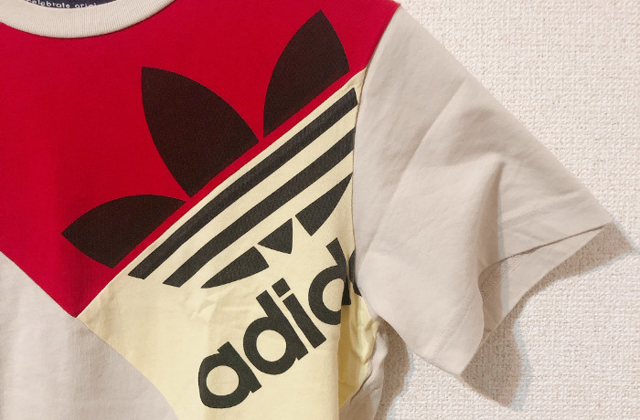 美品 adidas(アディダス) メンズ ライトベージュ×レッド半袖Tシャツ S